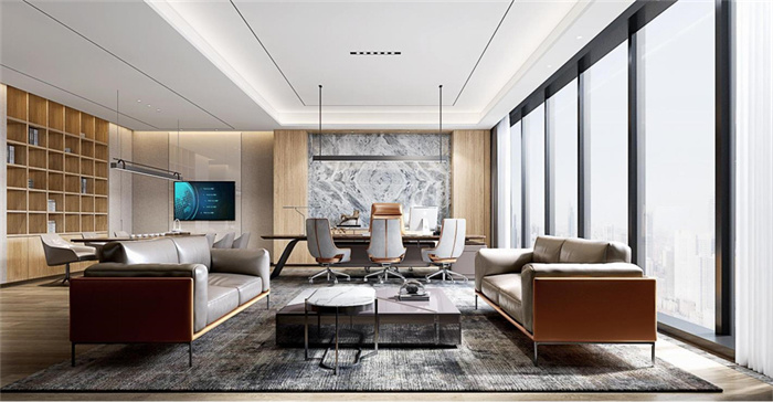 董事长办公室设计时最好靠实墙,给人一种稳定、安全感,我们中国人的说法代表背有靠山。视野朝向最好开阔,距离门要相对远一点,也要避开顶梁特别明线的位置。方位朝向以坐北朝南,坐东朝西两个方位最好。
