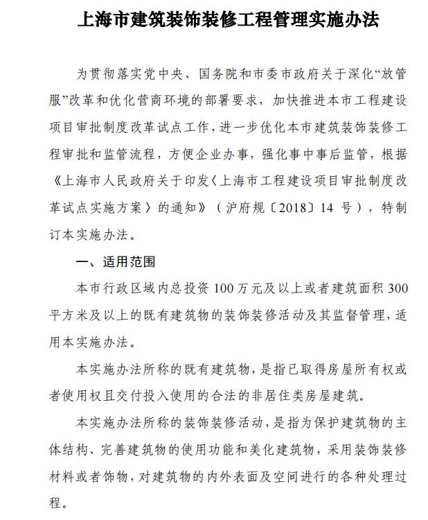 上海市办公室装修工程分为一般类装修工程和特殊类装修工程两类。按照分类实行差别化管理、分类审批。一次申报多个建筑单体或者部位实施装饰装修,凡有一个及以上建筑单体或部位涉及特殊类装修内容,该装饰装修工程按照特殊类装修工程进行审批。