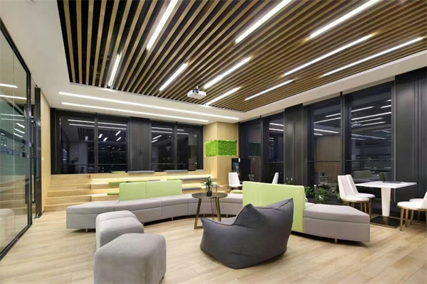 5、办公室装修顶面材料顶面材料和地面材料有类似情况,首先根据原始交付情况。如果原有吊顶材料不错,办公室装修风格也符合可以考虑不动。如果装修风格不符合,可以拆除选择喜欢的顶面装修材料,如石膏板吊顶、铝方通吊顶、铝塑板吊顶、矿棉板吊顶、裸顶等。
