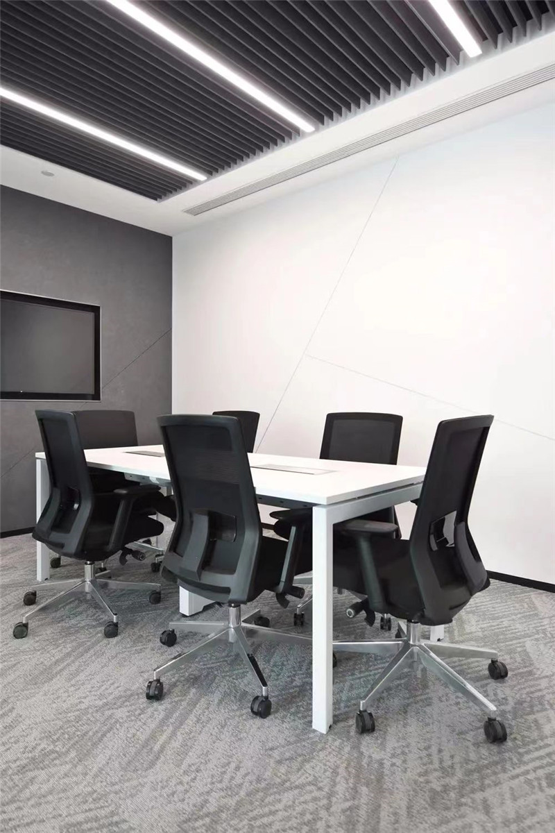 2、 其次明白了洽谈室与会议室的不同之处后,那么又该如何打造洽谈空间呢?先是洽谈室相对于会议室更方便作为面试间使用,小一点的洽谈室相对于会议室作为面试间在气氛与场合上更具有优势。不仅如此洽谈室相比于会议室,平时也可以作为企业内部几人非正式场合私下交流讨论的功能来使用。此外洽谈室相对于体量较大的会议室,其外形还可以结合空间的整体形状来构造,例如互联网公司洽谈室完全可以结合企业属性和空间效果做成圆形或者圆角矩形等形式,这样也能使空间更加活跃。