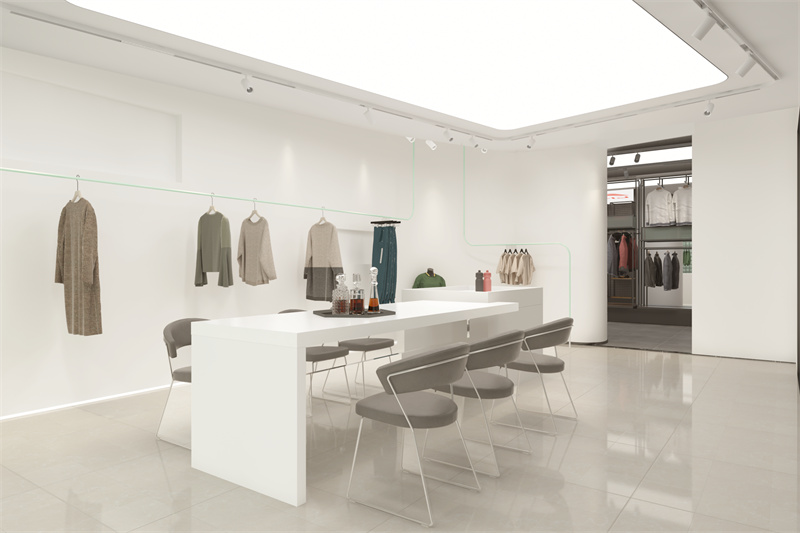 最后办公区与展示区之间的隔墙,可以使用展示柜进行代替,一方面节省了装修花费,另一方面也满足了办公区的储存功能。在展厅内也可以做一些小型的会议区,不仅可以方便来客交谈丰富了展厅功能,而且平时也能供人员讨论使用,这样能够更好地使展厅和办公室的功能相结合使用。