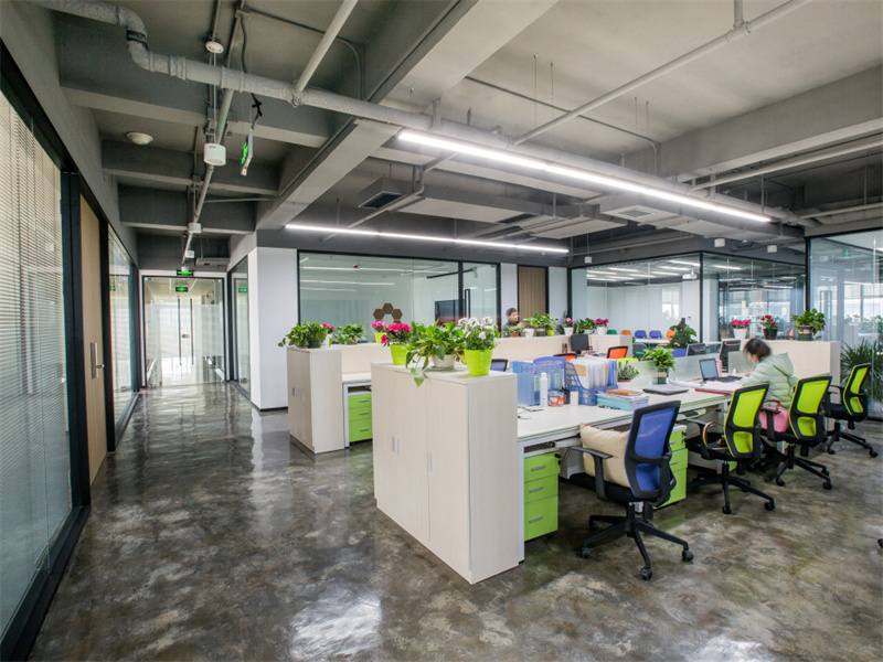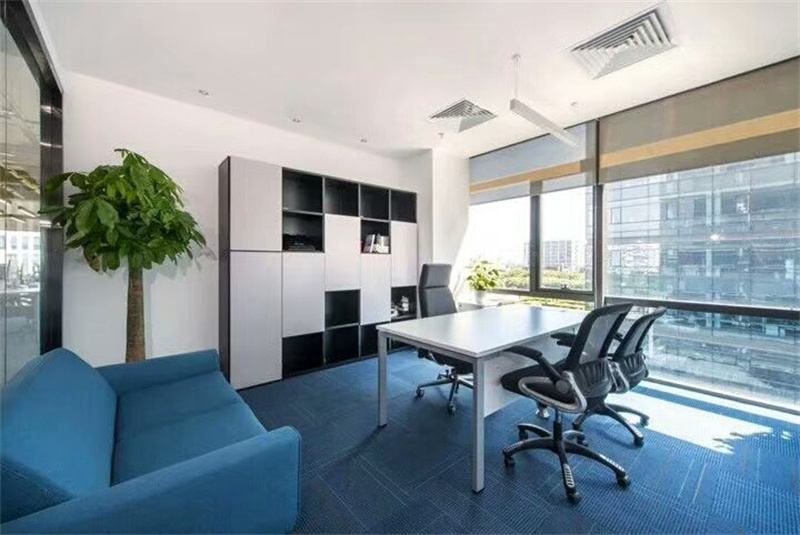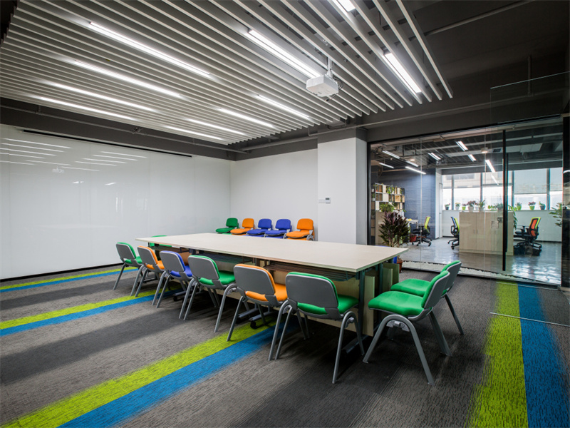 其次天花如果层高不够的话还是不建议去非要做吊顶的,如果做了吊顶导致层高非常低的话就会使办公室空间非常压抑,一开始还好,但是等到办公室正式运作的时候就会让人产生很大的心理压力影响人们的情绪,工作效率也会下降。天花上的空调以及消防也要找专业的人去按照空间天花的布局去调整,以方便后面使用。