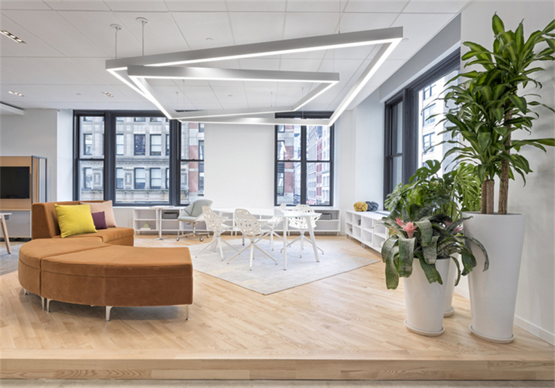 自然照明比人工照明更受欢迎.自然光源一方面节能,一方面在自然光下,可以提高工作效率.现在办公室设计的一个趋势就是留出一个特殊的空间,尽可能多的利用自然光,也可以配备高大的窗户、天窗、中庭.至于其他光源,上射灯和LED照明非常受欢迎,因为它们比标准荧